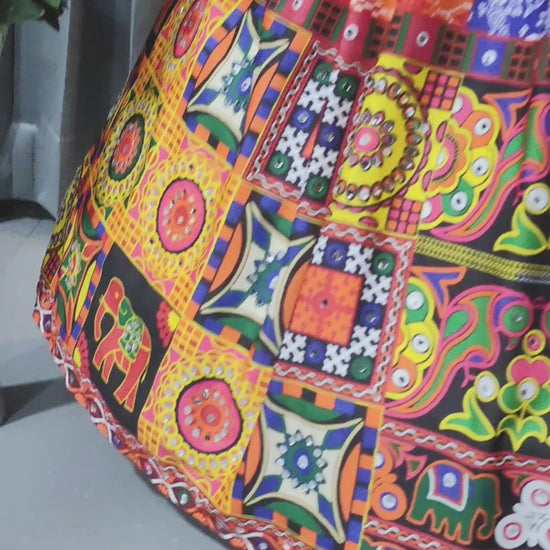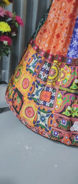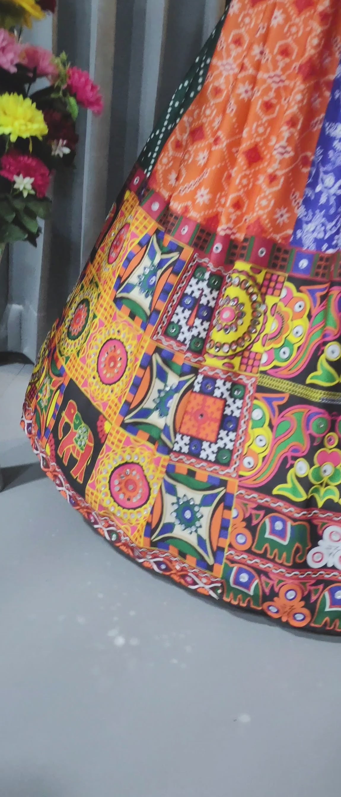 Butter Silk Navratri Lehenga Choli – Stitched with Digital Print & Real Mirror Work
