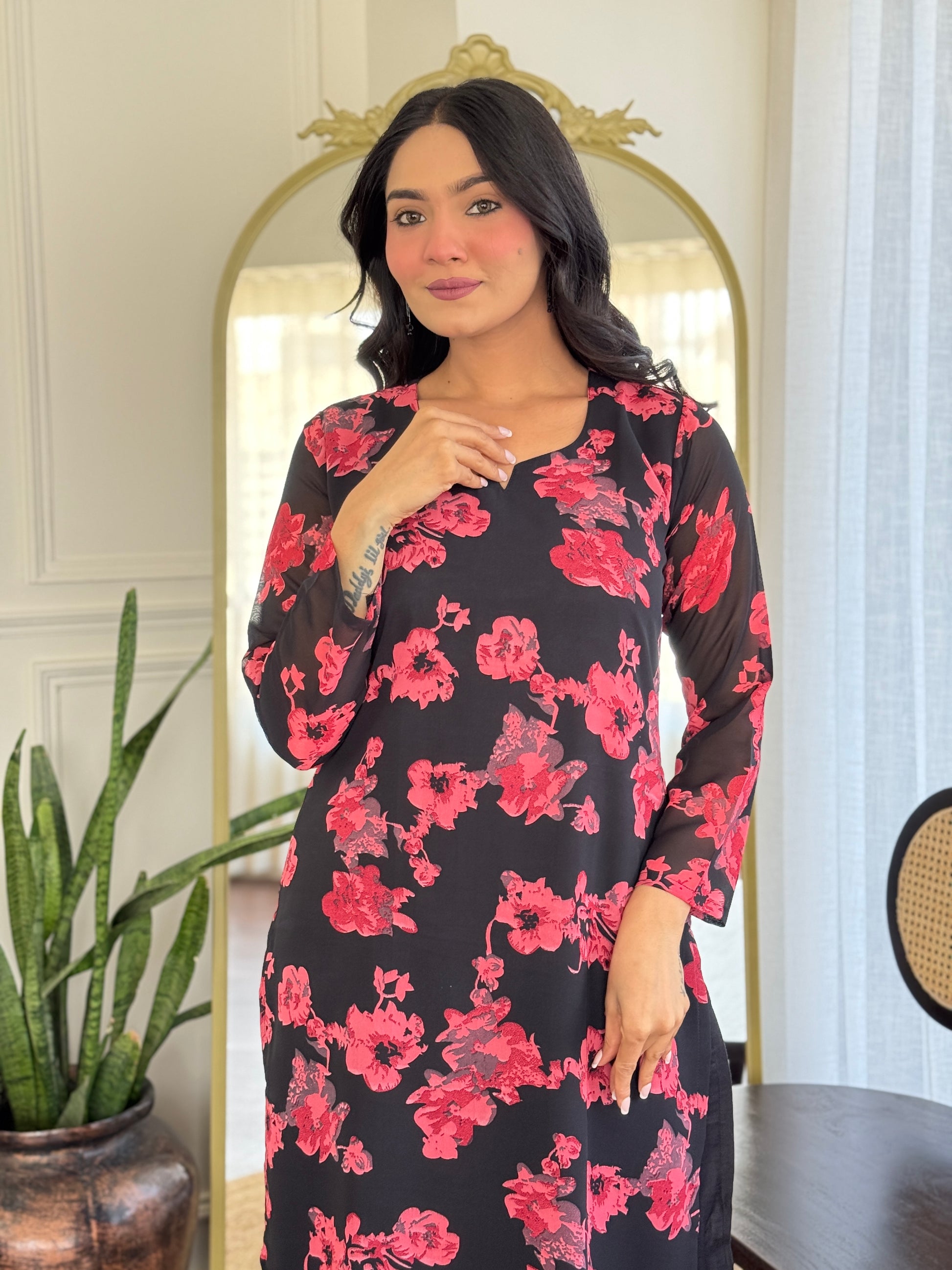 - Upgrade your everyday ethnic wardrobe with this elegant three-piece kurti set. Made from premium Chanderi Silk, this set includes a printed kurta, matching pants, and a coordinating dupatta. Designed for comfort and effortless style, it's ideal for casual outings, daily wear, or relaxed festive looks.