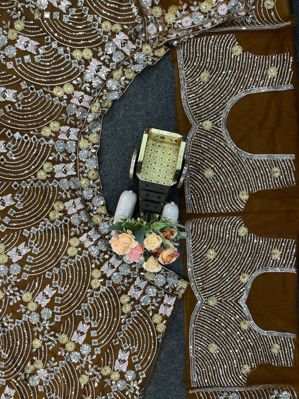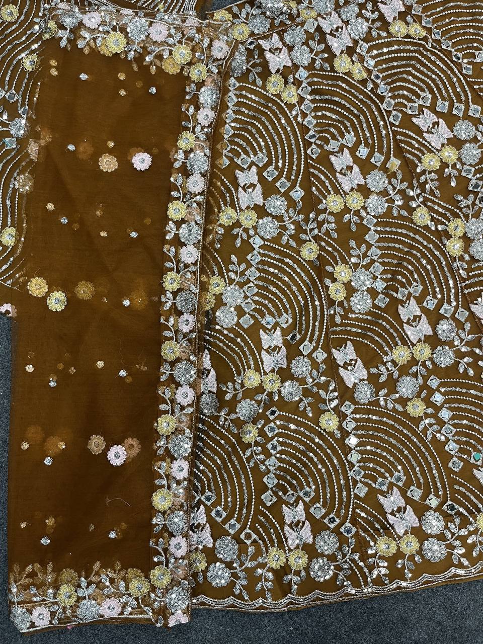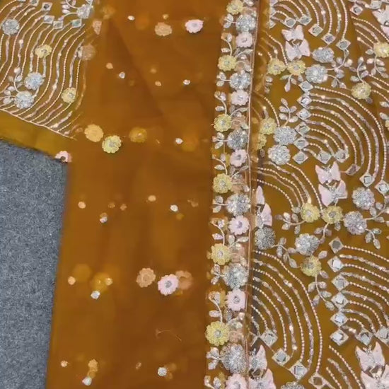 Work: Real Mirror Embroidery Sequins Work With Cancan & Canvas Patta