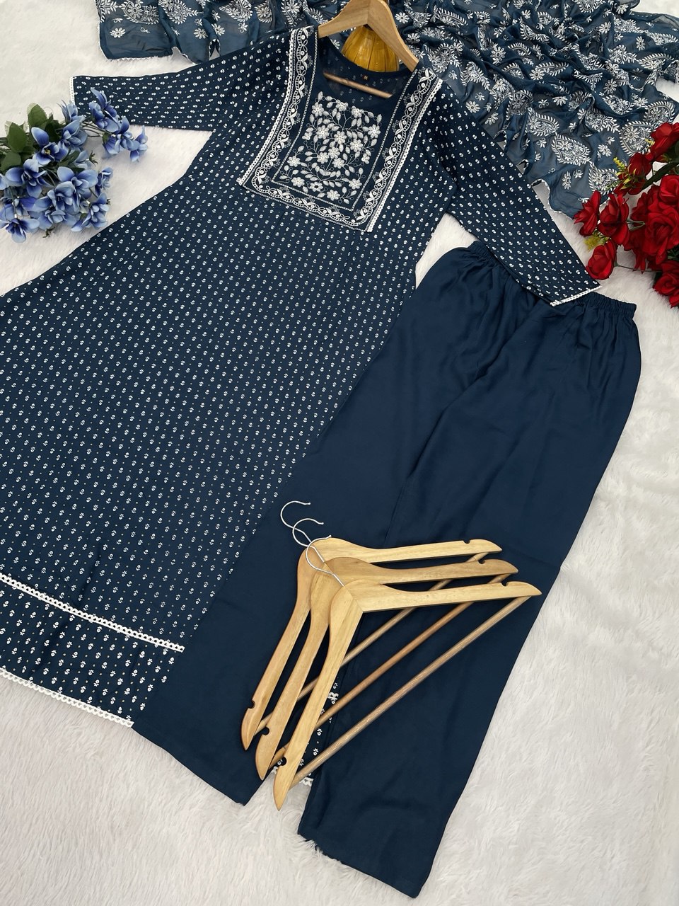 Elegant 14kg Heavy Reyon Suit Set with Embroidery & Foil Work Dupatta