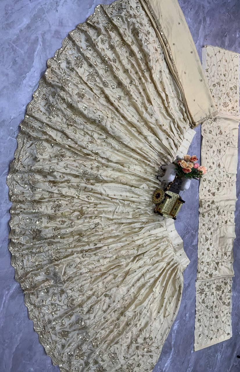 Latest New White Chinon Silk Embroidery Sequins Lehenga Choli For Women