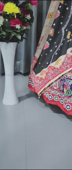 Navratri Glam in Butter Silk – Stitched Lehenga Choli with Mirror & Digital Print