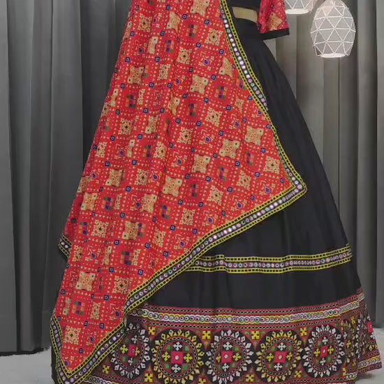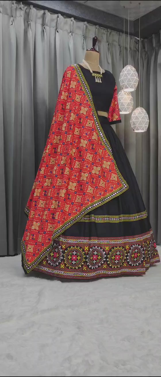 Navratri Maslin Cotton Mirror Work Lehenga Choli – Ready-to-Wear Festive Style