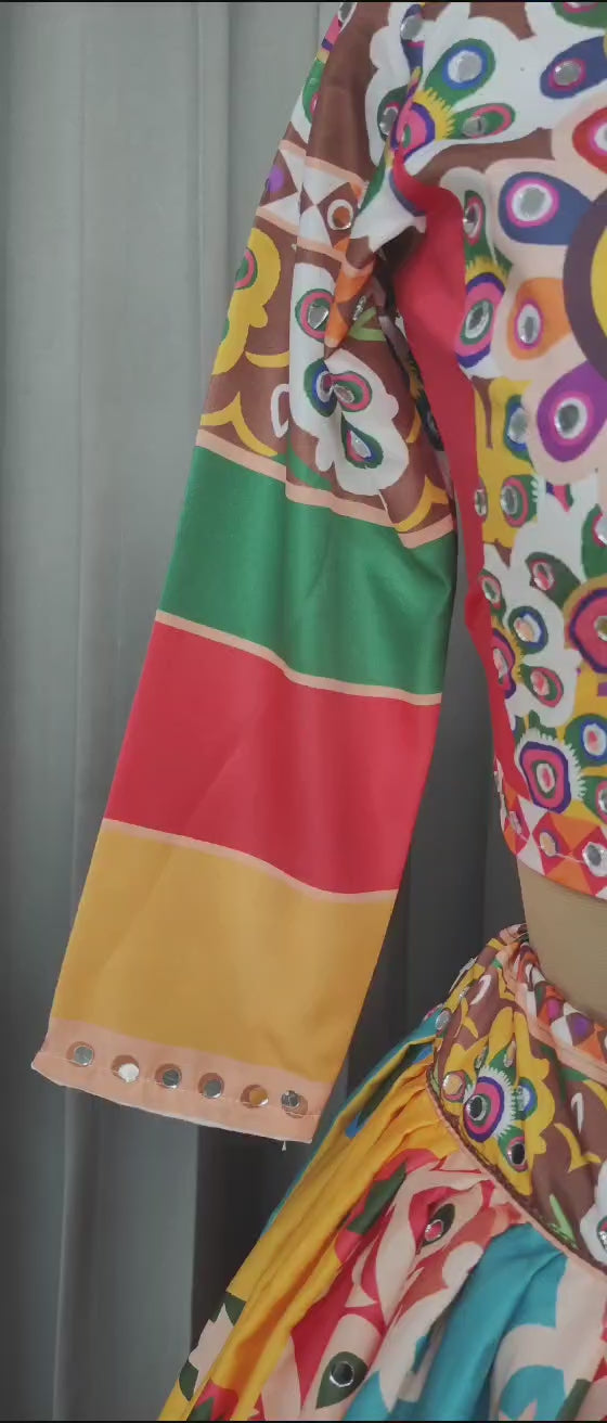 Navratri Special Butter Silk Lehenga with Digital Print & Real Mirror Work