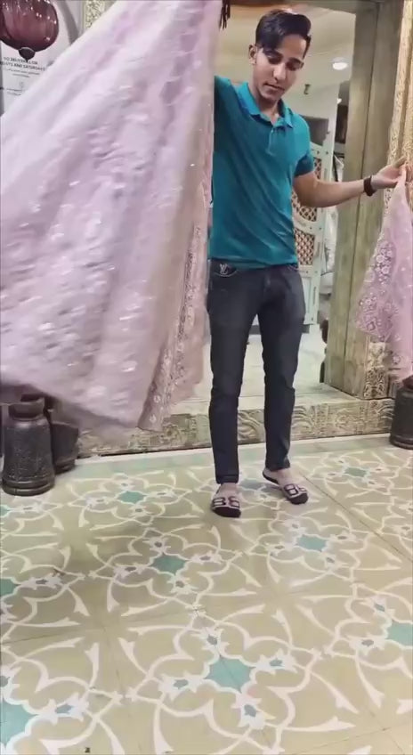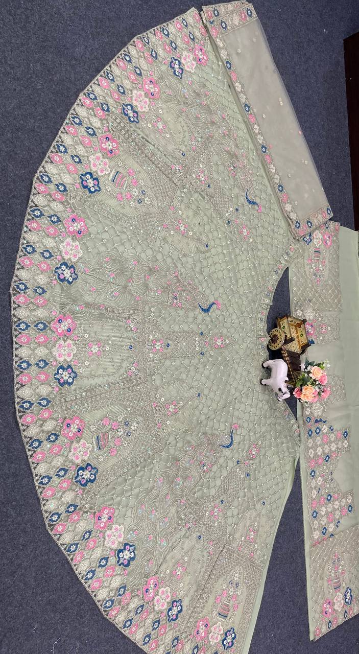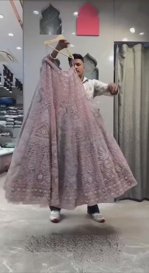Make a lasting impression with this exquisitely designed lehenga set, a perfect blend of tradition and modern elegance. The lehenga is crafted from premium quality soft net fabric, featuring rich embroidery and shimmering sequin work that adds a regal touch to your ensemble. Designed with a voluminous 4-meter flare and structured with cancan and canvas patta, it offers a graceful and dramatic silhouette that flatters every movement. Semi-stitched and customizable up to size 44, it allows for a perfect tailored fit. The accompanying blouse, made from luxurious butterfly net, comes with Blouse stitched adorned with matching embroidery and sequin detailing, giving you the creative freedom to style it to your liking. Completing the set is a stunning 2.3-meter dupatta, crafted from premium mono net and intricately embellished with embroidery and sequins to tie the entire look together with sheer sophistication. Whether you're attending a wedding, engagement, or festive celebration, this lehenga set is a statement of timeless beauty, charm, and grace.