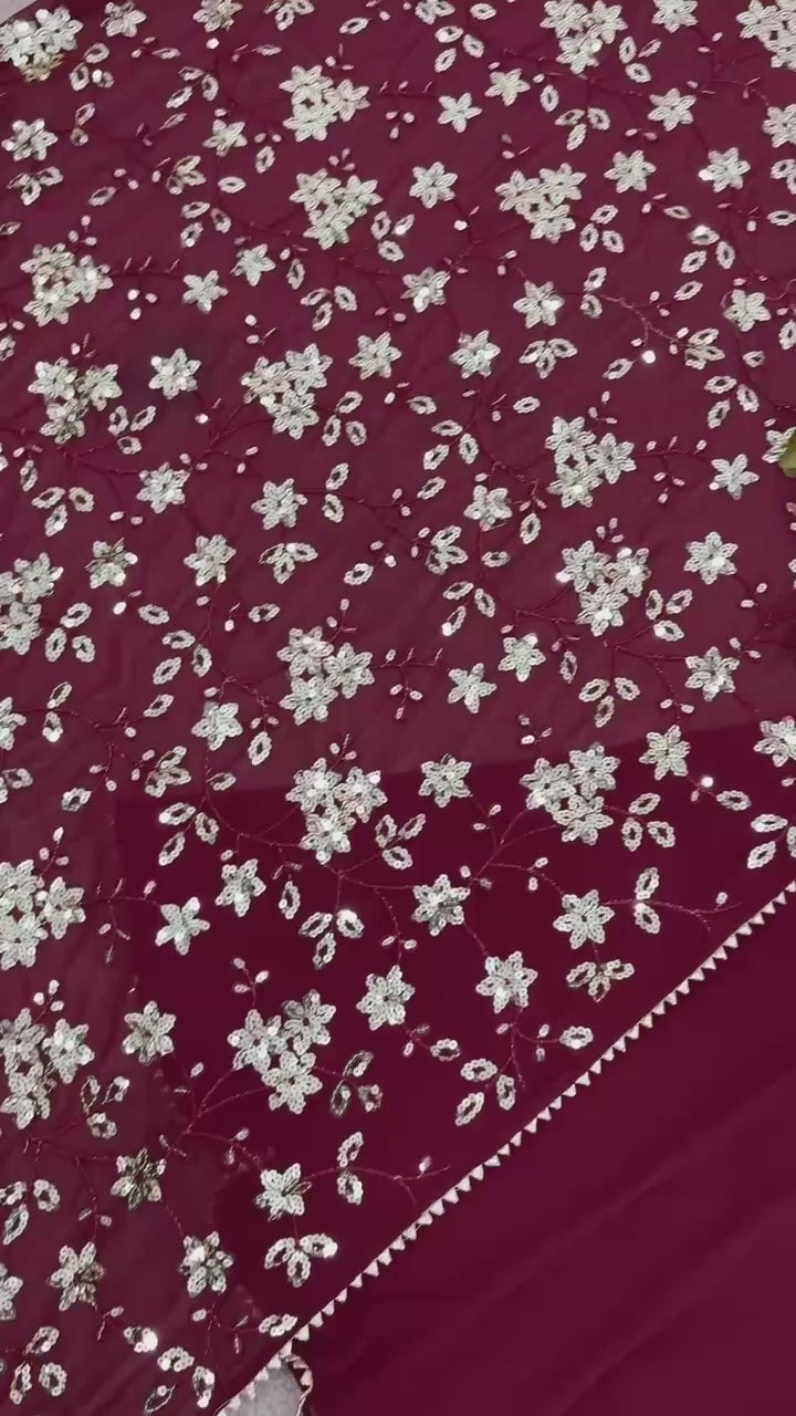 Dupatta Fabric: Heavy Faux Georgette with Embroidery Sequence Work & Lace Border