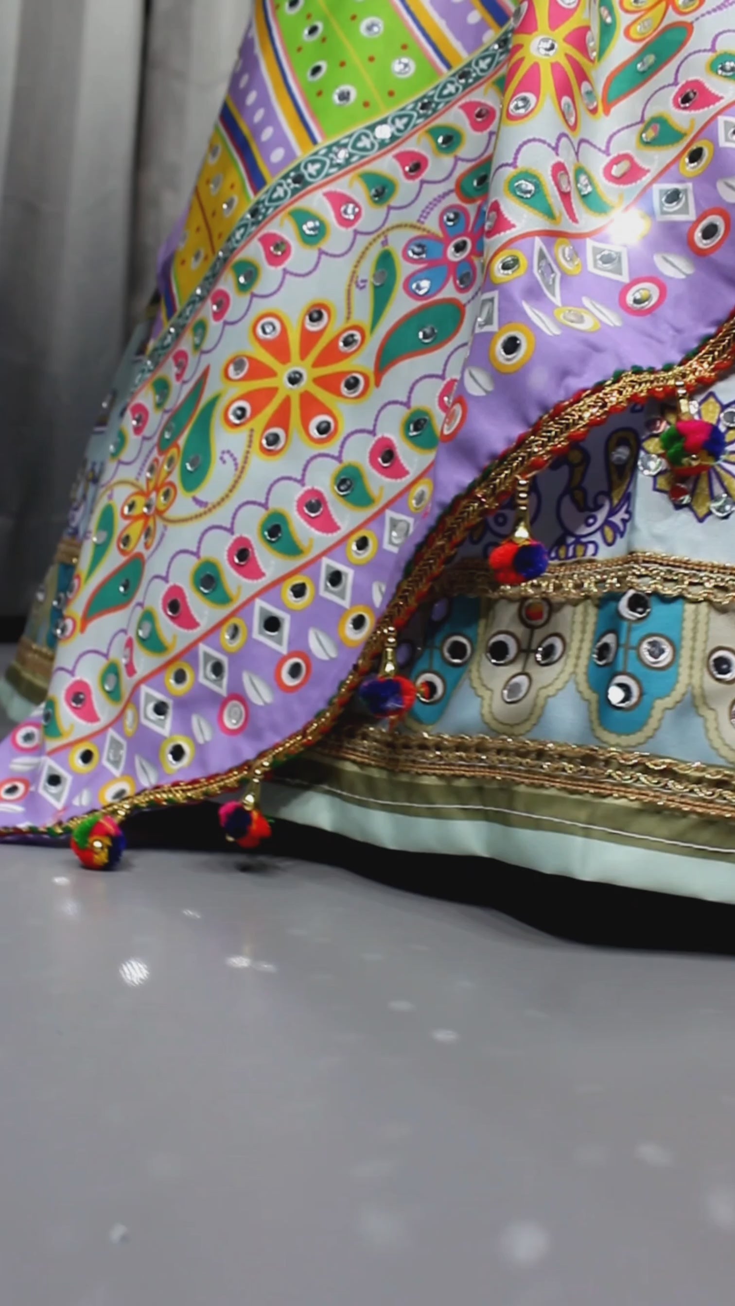Ready-Made Butter Silk Navratri Lehenga Choli – Digital Print & Real Mirror Work