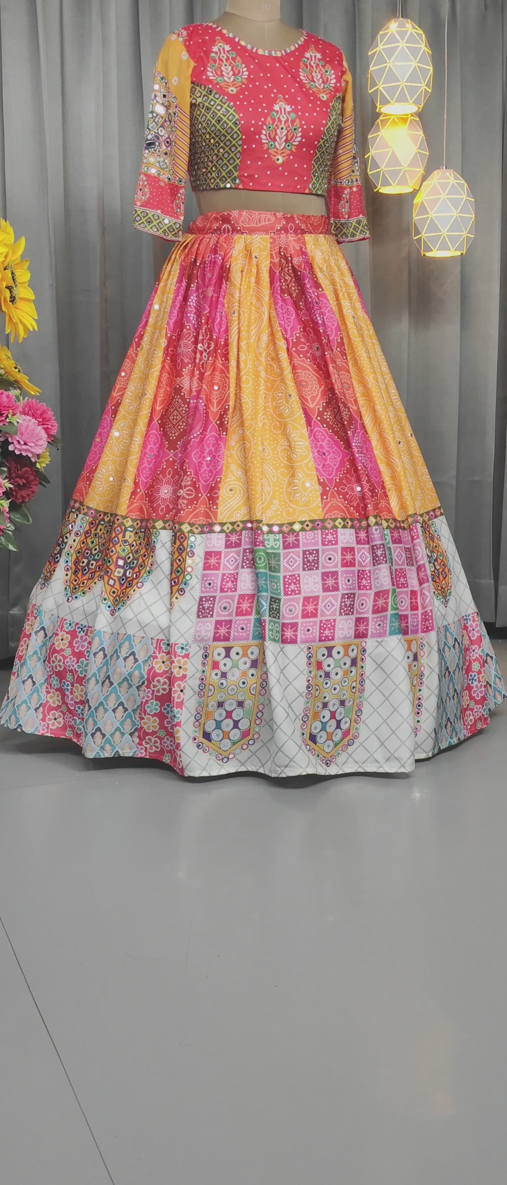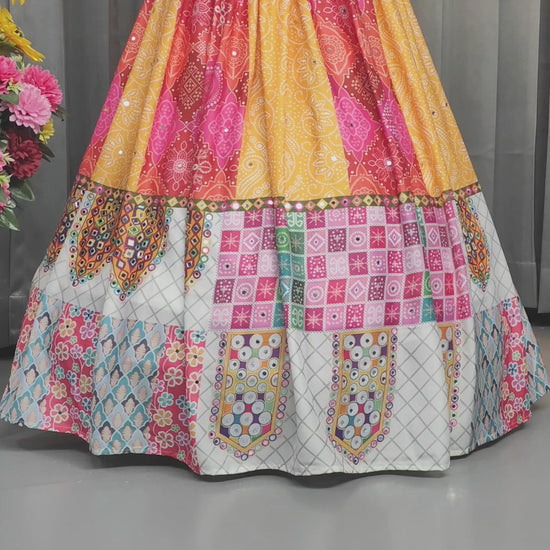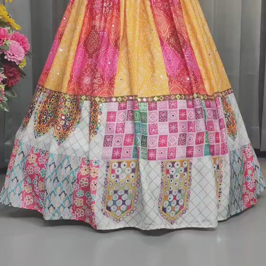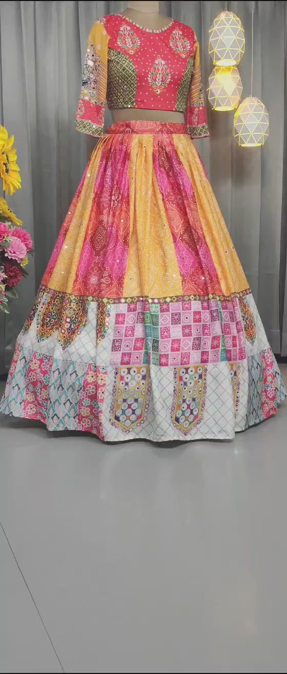 Stitched Butter Silk Lehenga Choli Set – Real Mirror Embellishments & Digital Print | Festive Wear