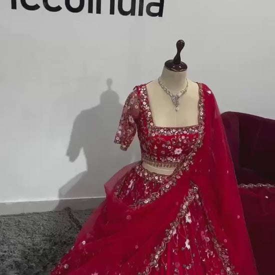 Elevate your ethnic wardrobe with this exquisite Lehenga Choli set crafted from premium quality soft net fabric. Featuring delicate and intricate sequins embroidery work paired with structured Can-Can and Canvas Patta, this lehenga offers a majestic 4-meter flare that ensures a graceful and voluminous silhouette.