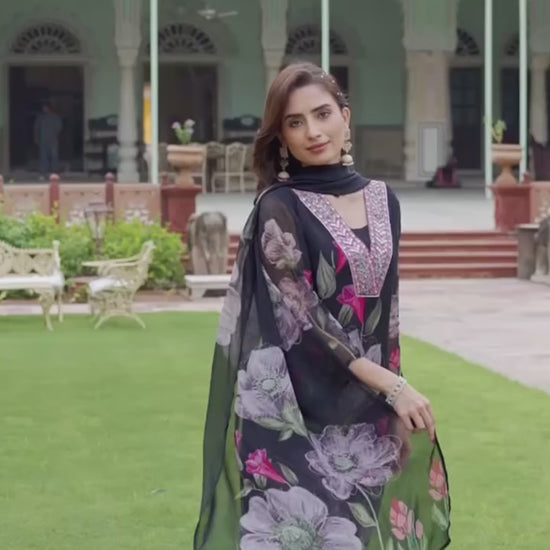 Make a chic style statement with this graceful 3-piece Georgette Kurti Set, thoughtfully designed to blend traditional elegance with contemporary flair. Crafted from soft, flowy Georgette fabric, both the kurti and pant ensure a lightweight and flattering drape.