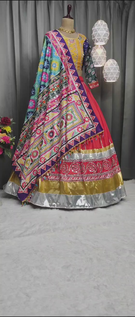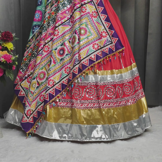 Work: Fancy Digital Print With Real Mirror Work And Golden Zari Gota Work