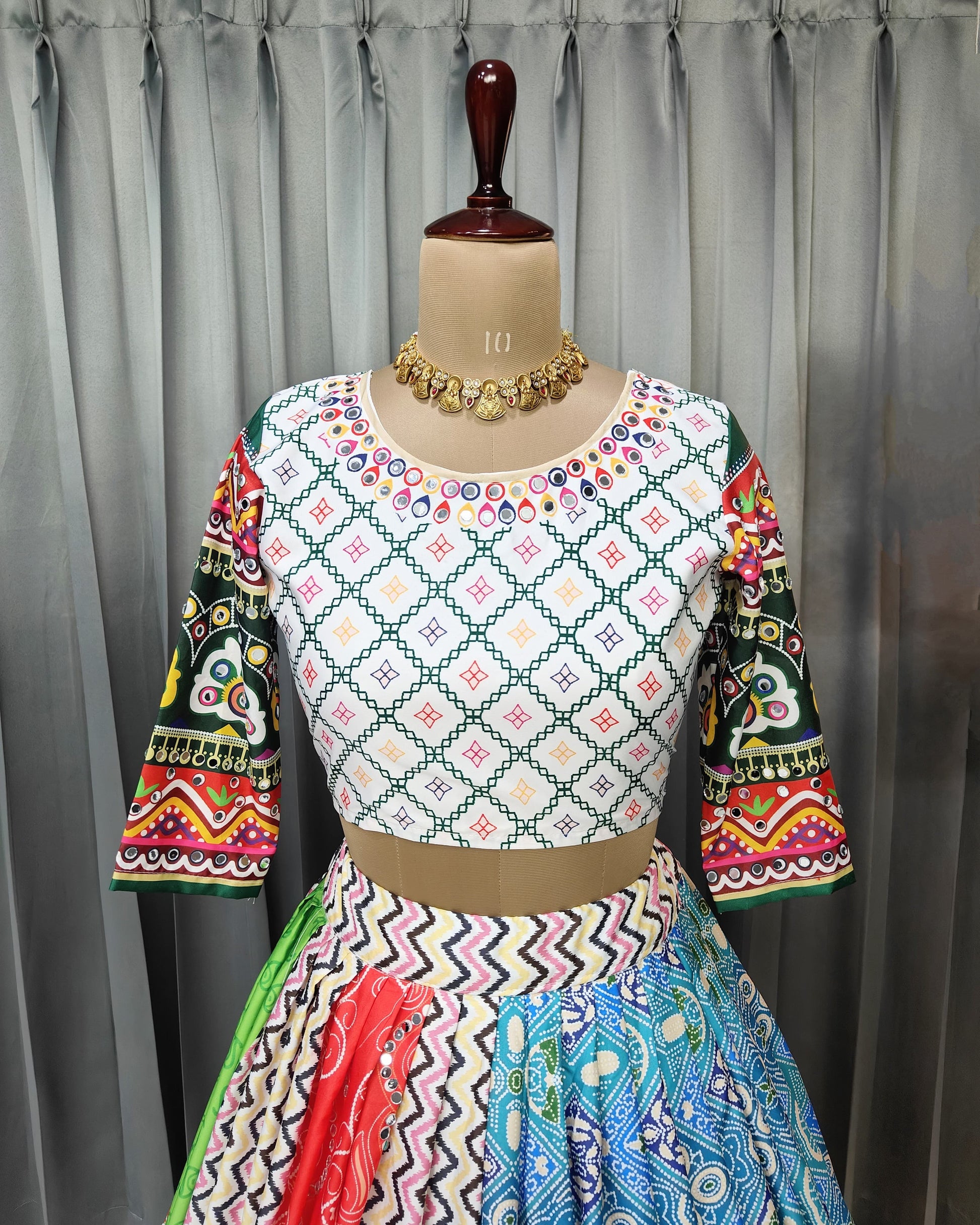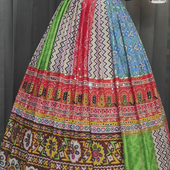 Twirl-Ready Butter Silk Lehenga for Navratri – Real Mirror & Print Work