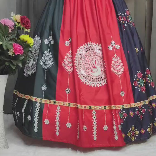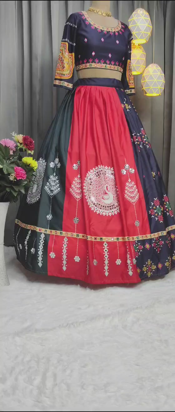 Women’s Butter Silk Lehenga Choli – Ready to Wear with Mirror Work & Printed Dupatta