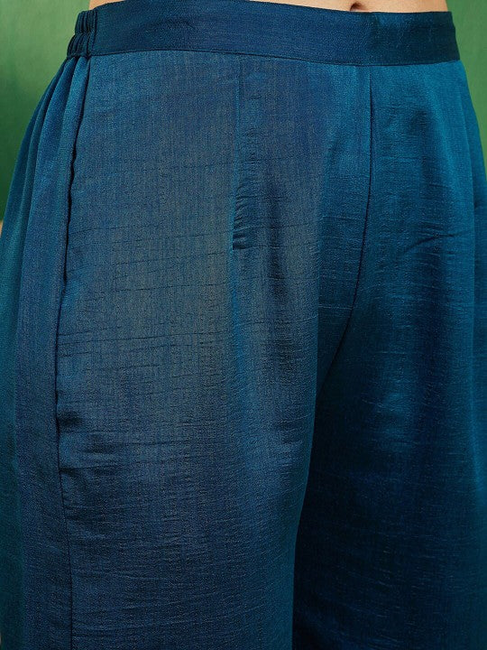 The kurta and pant are made from high-quality CP Vichitra fabric, offering a graceful fall and soft feel