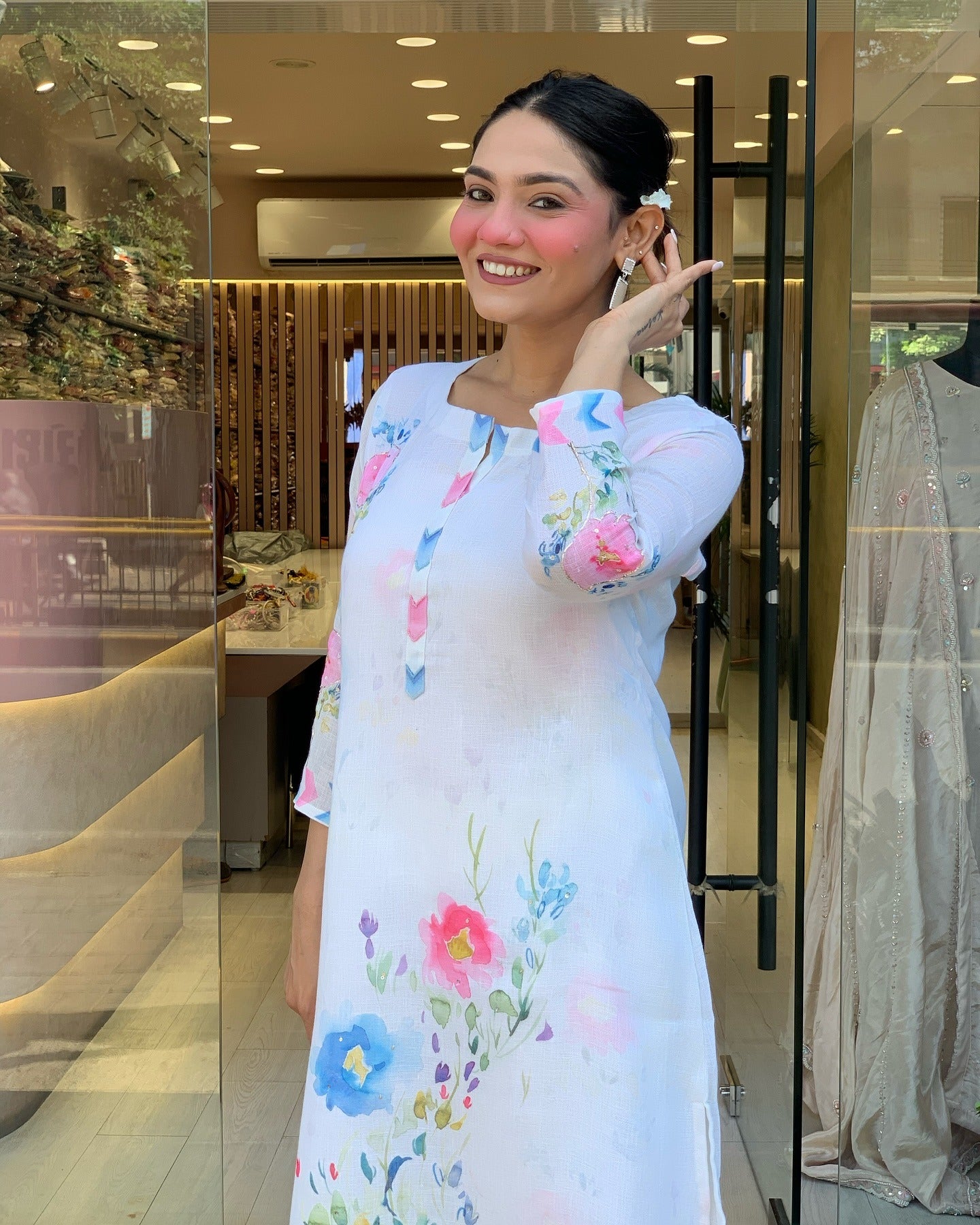 Crafted from 100% Pure Linen, the kurta and pant offer a breathable, soft texture with a structured look