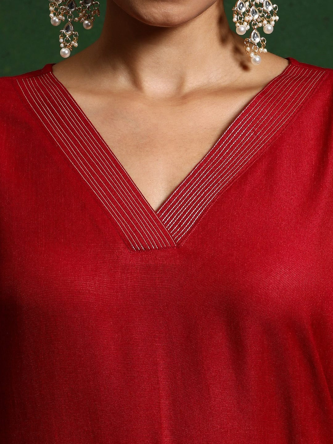 Detailed embroidery work adds charm and tradition to this modern silhouette